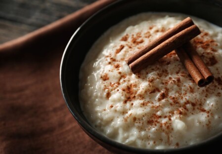 Risu cu latti (riso con il latte) preparato con riso cotto, latte zuccherato, pezzettini di cioccolato e cannella, ricoperti da “diavolicchi” cioè codette di zucchero colorate.